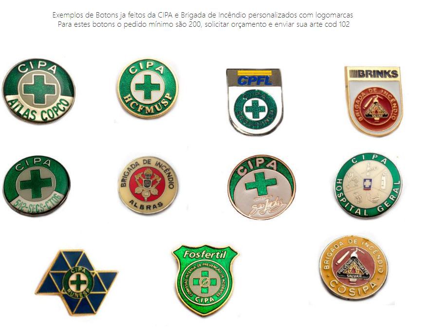 Fabricamos boton cipa e para todas as finalidade de botons de segurança como, Cipa Segurança, Boton Brigada de Incendio, Boton Brigada de Primeiros Socorros, Boton Lider de Segurança etc. É fabricado de acordo com a descrição acima do boton estampado em baixo relevo.